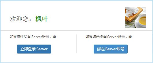 如果您已经有 iServer 账号,请您点击“绑定 iServer 账号”按钮,实现 QQ 账号与 iServer 账号的绑定, 您下次既可以使用 iServer 账号也可以使用 QQ 账号登陆 iServer 。当您使用 QQ 账号登陆 iServer 时,您拥有与 QQ 账号绑定的 iServer 账号同等的权限 。如果您的 iServer 账号具有管理员权限,那么当您使用 QQ 账号登陆 iServer 后,就可以访问 iServer 所有页面。