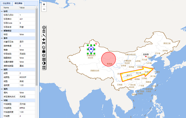属性修改,鼠标标绘完成后,鼠标左键单击选中标号,属性面板会显示该选中的对象的属性值,即可在属性面板上直接修改: